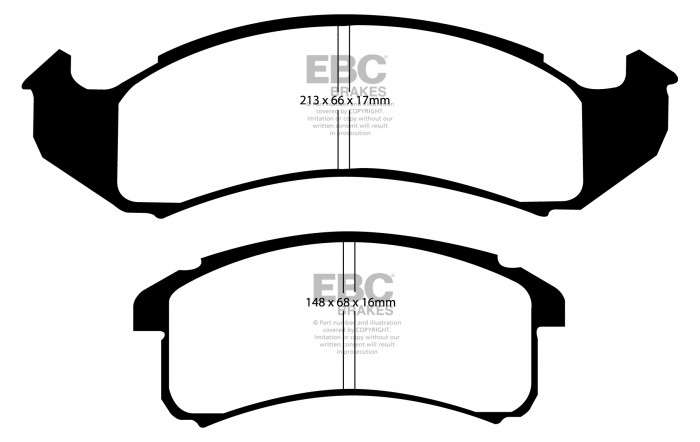 Przeznaczone do wymagających warunków jazdy miejskiej, charakteryzują się podwyższoną skutecznością hamowania aż do 600°C. Klocki hamulcowe EBC Greenstuff wyróżnia wysoka początkowa siła hamowania, dająca kierowcy poczucie pewności od pierwszego naciśnięcia pedału hamulca. Można by powiedzieć że nie ma czegoś takiego jak niepylące okładziny cierne. Istotą działania hamulców jest wytwarzanie pewnych ilości pyłu, co pozwala uniknąć wibracji tarczy hamulcowej (tzw. shimmingu). Pylenie klocków hamulcowych jest nasilone w okresie ich docierania, szczególnie w przypadku zużytych tarcz hamulcowych. W porównaniu z większością innych, klocki EBC Green Stuff generują mniejsze ilości pyłu i jest on łatwiej zmywalny. Nominalny współczynnik tarcia 0,55. Do cięższych i szybszych samochodów oraz tych wyposażonych w silniki o mocy przekraczającej 200 KM stanowczo zalecamy produkty z serii Redstuff, które wyróżniają się jeszcze mniejszym pyleniem.