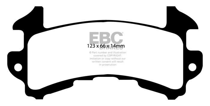 Okładziny wykonane są z kompozytu ciernego na bazie włókien z tworzywa Kevlar® wzmacnianego spiekami ceramicznymi. W porównaniu do wcześniejszej generacji klocków EBC Redstuff (z okładzinami ciernymi nieceramicznymi) ten materiał jest o lata świetlne do przodu. Jest trwalszy, lepiej hamuje i jest cichszy. Klocki te zapewniają imponującą skuteczność przy częstym intensywnym hamowaniu.