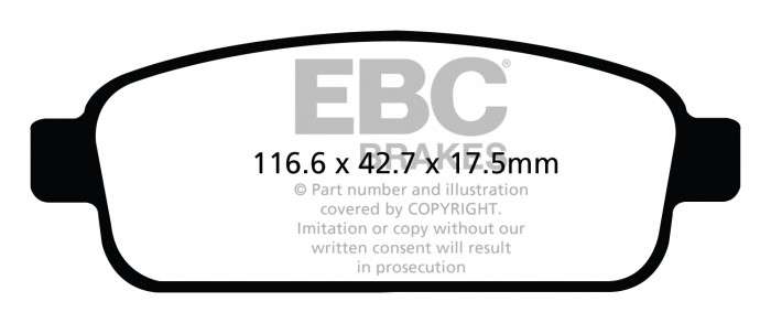 Nie pozwól, aby niższa cena zamiennika przesłoniła Ci ten doskonałej jakości produkt, który zatrzyma Twój samochód równie sprawnie, jak klocki oryginalne, a przy tym szybciej niż większość innych dostępnych na rynku. Wspaniałą zaletą klocków EBC jest ich zdolność do całkowitej eliminacji szarpania przy hamowaniu – po 450-600 km przebiegu praktycznie KOMPENSUJĄ szarpnięcia o umiarkowanym natężeniu. Nominalny współczynnik tarcia 0,46, przy minimalnym ścieraniu tarcz hamulcowych oraz pyleniu na poziomie części oryginalnych.