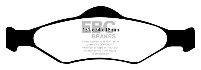 Przeznaczone do wymagających warunków jazdy miejskiej, charakteryzują się podwyższoną skutecznością hamowania aż do 600°C. Klocki hamulcowe EBC Greenstuff wyróżnia wysoka początkowa siła hamowania, dająca kierowcy poczucie pewności od pierwszego naciśnięcia pedału hamulca. Można by powiedzieć że nie ma czegoś takiego jak niepylące okładziny cierne. Istotą działania hamulców jest wytwarzanie pewnych ilości pyłu, co pozwala uniknąć wibracji tarczy hamulcowej (tzw. shimmingu). Pylenie klocków hamulcowych jest nasilone w okresie ich docierania, szczególnie w przypadku zużytych tarcz hamulcowych. W porównaniu z większością innych, klocki EBC Green Stuff generują mniejsze ilości pyłu i jest on łatwiej zmywalny. Nominalny współczynnik tarcia 0,55. Do cięższych i szybszych samochodów oraz tych wyposażonych w silniki o mocy przekraczającej 200 KM stanowczo zalecamy produkty z serii Redstuff, które wyróżniają się jeszcze mniejszym pyleniem.