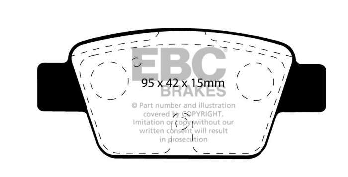 Okładziny wykonane są z kompozytu ciernego na bazie włókien z tworzywa Kevlar® wzmacnianego spiekami ceramicznymi. W porównaniu do wcześniejszej generacji klocków EBC Redstuff (z okładzinami ciernymi nieceramicznymi) ten materiał jest o lata świetlne do przodu. Jest trwalszy, lepiej hamuje i jest cichszy. Klocki te zapewniają imponującą skuteczność przy częstym intensywnym hamowaniu.