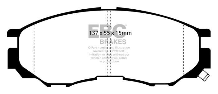 Nie pozwól, aby niższa cena zamiennika przesłoniła Ci ten doskonałej jakości produkt, który zatrzyma Twój samochód równie sprawnie, jak klocki oryginalne, a przy tym szybciej niż większość innych dostępnych na rynku. Wspaniałą zaletą klocków EBC jest ich zdolność do całkowitej eliminacji szarpania przy hamowaniu – po 450-600 km przebiegu praktycznie KOMPENSUJĄ szarpnięcia o umiarkowanym natężeniu. Nominalny współczynnik tarcia 0,46, przy minimalnym ścieraniu tarcz hamulcowych oraz pyleniu na poziomie części oryginalnych.