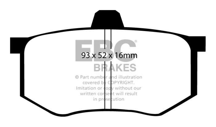 Czarne klocki EBC wykonane są z najwyższej jakości materiałów ciernych, spełniających wymogi norm bezpieczeństwa hamulców ECE R90 i jako takie stanowią doskonały zamiennik klocków montowanych fabrycznie – a przy tym za znacznie mniejsze pieniądze. Produkowane z podkładkami antywibracyjnymi, ukośnymi ścięciami, szczeliną dylatacyjną oraz unikalną powłoką BRAKE-IN, zapewniają niezwykle krótki czas docierania (w Europie tylko określone warianty mają podkładki).