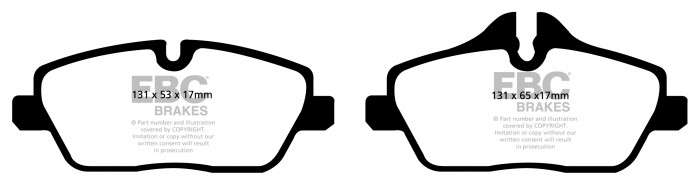 Przeznaczone do wymagających warunków jazdy miejskiej, charakteryzują się podwyższoną skutecznością hamowania aż do 600°C. Klocki hamulcowe EBC Greenstuff wyróżnia wysoka początkowa siła hamowania, dająca kierowcy poczucie pewności od pierwszego naciśnięcia pedału hamulca. Można by powiedzieć że nie ma czegoś takiego jak niepylące okładziny cierne. Istotą działania hamulców jest wytwarzanie pewnych ilości pyłu, co pozwala uniknąć wibracji tarczy hamulcowej (tzw. shimmingu). Pylenie klocków hamulcowych jest nasilone w okresie ich docierania, szczególnie w przypadku zużytych tarcz hamulcowych. W porównaniu z większością innych, klocki EBC Green Stuff generują mniejsze ilości pyłu i jest on łatwiej zmywalny. Nominalny współczynnik tarcia 0,55. Do cięższych i szybszych samochodów oraz tych wyposażonych w silniki o mocy przekraczającej 200 KM stanowczo zalecamy produkty z serii Redstuff, które wyróżniają się jeszcze mniejszym pyleniem.