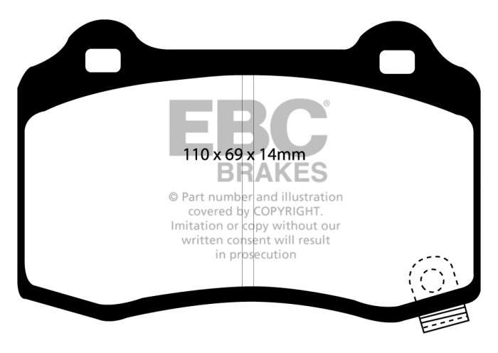 Okładziny wykonane są z kompozytu ciernego na bazie włókien z tworzywa Kevlar® wzmacnianego spiekami ceramicznymi. W porównaniu do wcześniejszej generacji klocków EBC Redstuff (z okładzinami ciernymi nieceramicznymi) ten materiał jest o lata świetlne do przodu. Jest trwalszy, lepiej hamuje i jest cichszy. Klocki te zapewniają imponującą skuteczność przy częstym intensywnym hamowaniu.