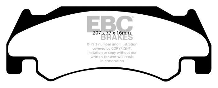EBC Yellowstuff jest materiałem ciernym na bazie włókien aramidowych zapewniającym wysoką skuteczność hamulców już przy niskiej temperaturze i jest pierwszym materiałem do ZASTOSOWAŃ ULICZNYCH I TOROWYCH. Klocki te nie wymagają rozgrzania, ale wysoka temperatura ostrej jazdy tylko wzmaga ich skuteczność. Nie są to klocki mało pylące – poszukując takich do zastosowań ulicznych należy rozważyć EBC Redstuff. Klocki EBC Yellowstuff są obecnie produkowane w dwóch wersjach materiałowych – DM1846 i DM1793. Obie były z powodzeniem stosowane w wyścigach. Choć w porównaniu ze standardowymi klockami oryginalnymi DM1793 bez wątpienia dają lepszą reakcję, to JEDNAK są nieco twardsze, nieco trwalsze i lepiej przystosowane do sportowej jazdy na torze.