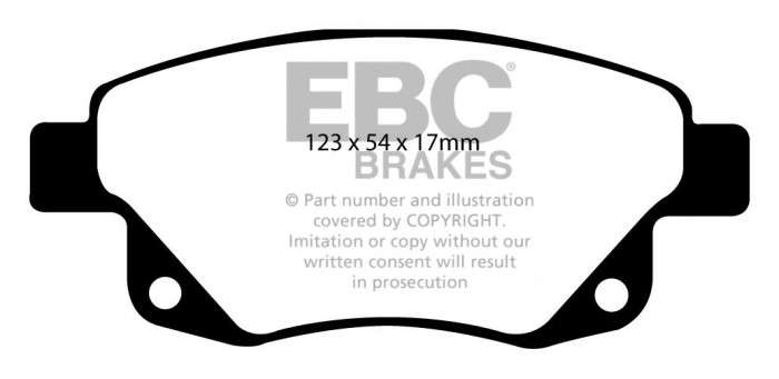 Nie pozwól, aby niższa cena zamiennika przesłoniła Ci ten doskonałej jakości produkt, który zatrzyma Twój samochód równie sprawnie, jak klocki oryginalne, a przy tym szybciej niż większość innych dostępnych na rynku. Wspaniałą zaletą klocków EBC jest ich zdolność do całkowitej eliminacji szarpania przy hamowaniu – po 450-600 km przebiegu praktycznie KOMPENSUJĄ szarpnięcia o umiarkowanym natężeniu. Nominalny współczynnik tarcia 0,46, przy minimalnym ścieraniu tarcz hamulcowych oraz pyleniu na poziomie części oryginalnych.